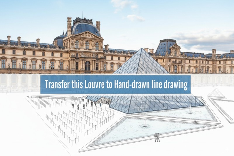 Transfer this Louvre to Hand-drawn line drawing