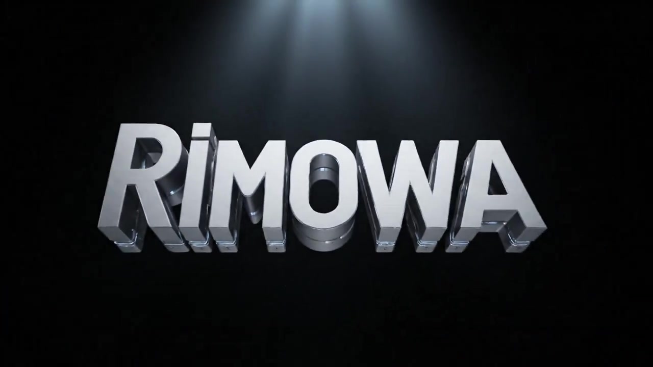"description": "individual metallic components float and assemble mid-air, first into the RIMOWA logo, then dynamically unfold into a luxury suitcase",