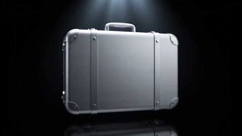 "props": "brushed aluminum RIMOWA suitcase, logo segments as structural parts"