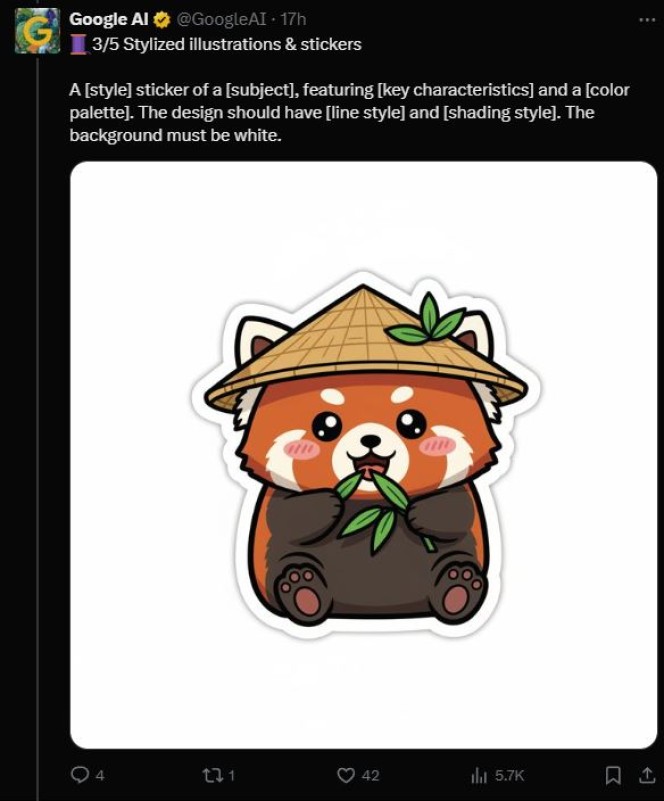 A [style] sticker of a [subject], featuring [key characteristics] and a [color palette]. The design should have [line style] and [shading style]. The background must be white.